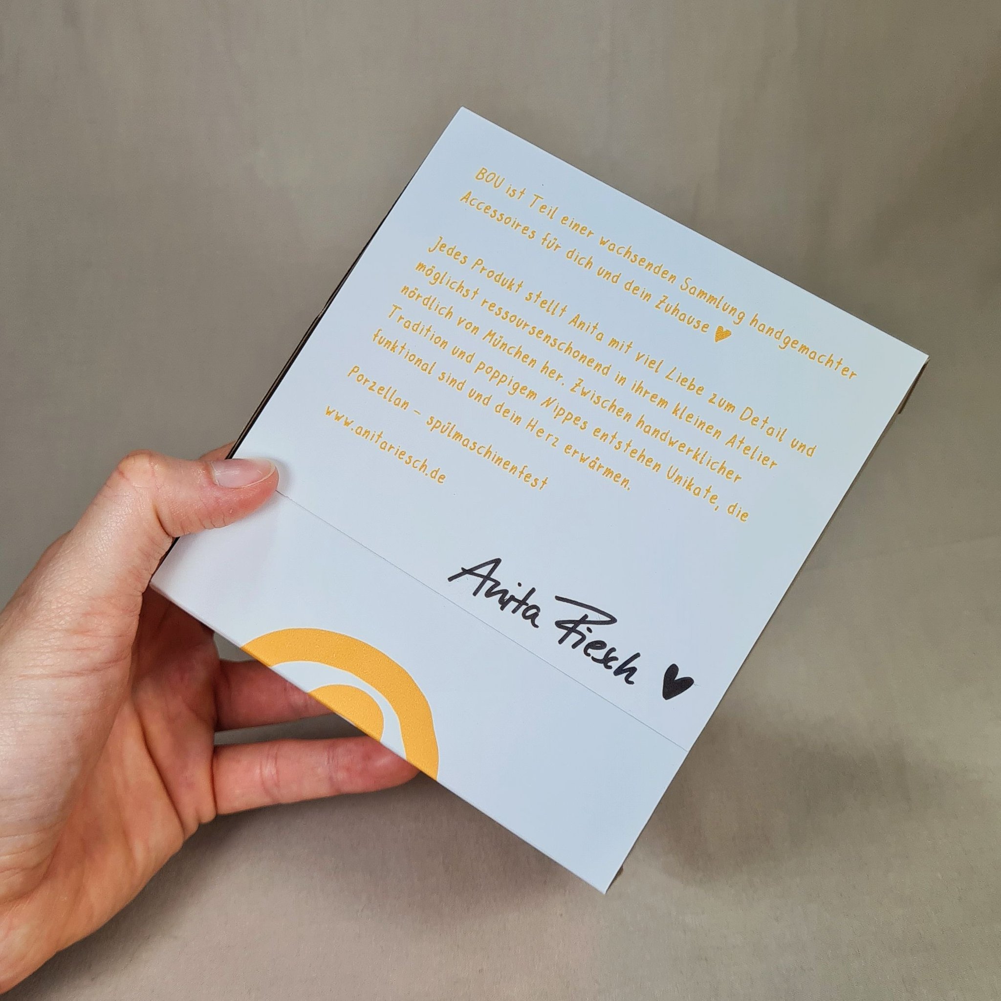 Jedes Produkt stelle ich mit viel Liebe zum Detail und möglichst ressourcenschonend in meinem kleinen Atelier nördlich von München her.